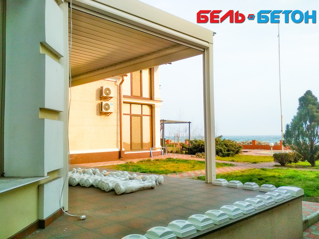 Новая работа в городе Южный, Одесской области. В последнее время все большой популярностью пользуются столбы-тумбы стилизованные под античную колонну с каннелюрами (ниже есть ссылка на страничку товара) По моему мнению эта популярность заслуженная, выглядят такие тумбы свежо и отлично сочетаются в ансамбле с колоннами K1 и классическими балясинами B0 и B3. На фотографиях вы можете увидеть это в воочию.